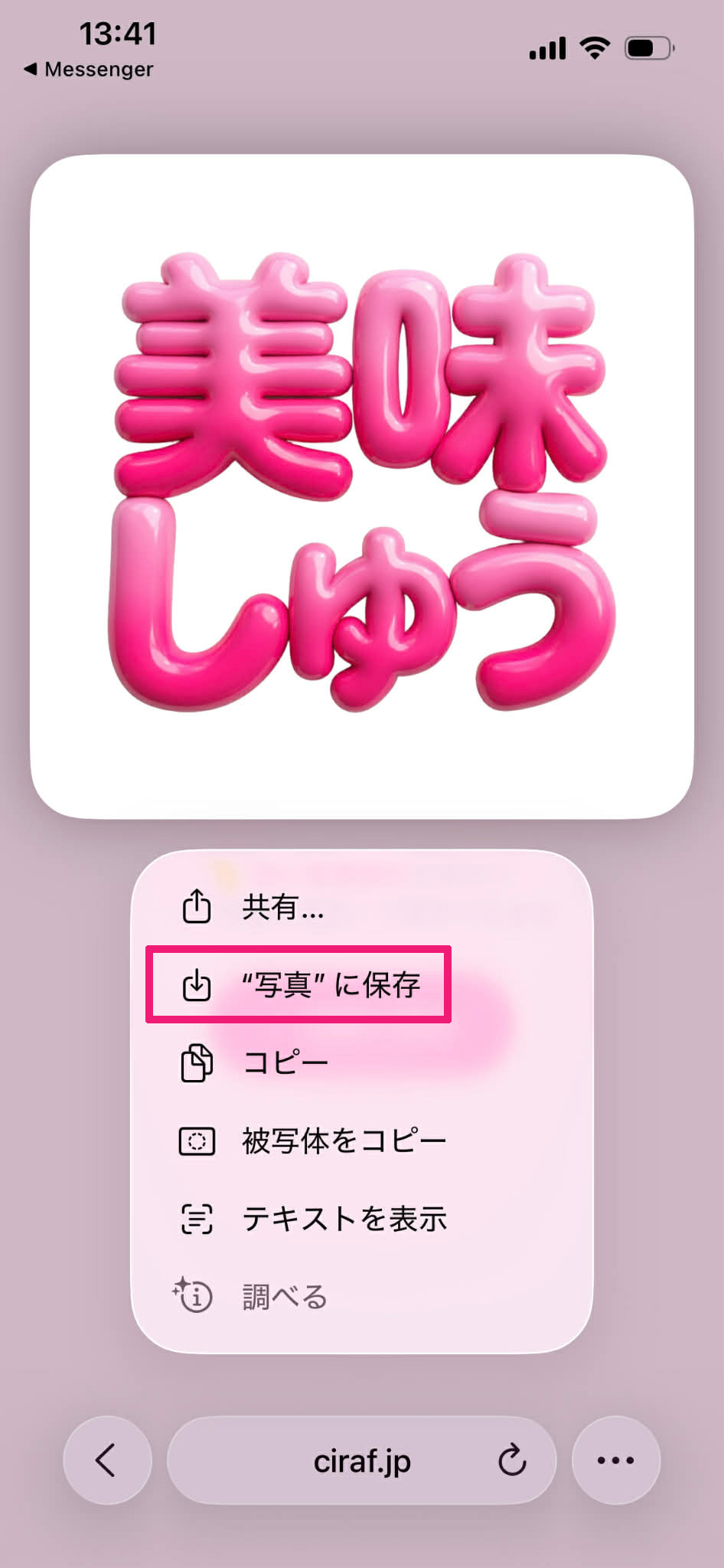 ぷに文字メーカーで画像を作ったら「画像を保存」をタップして、カメラロールに保存してね。
