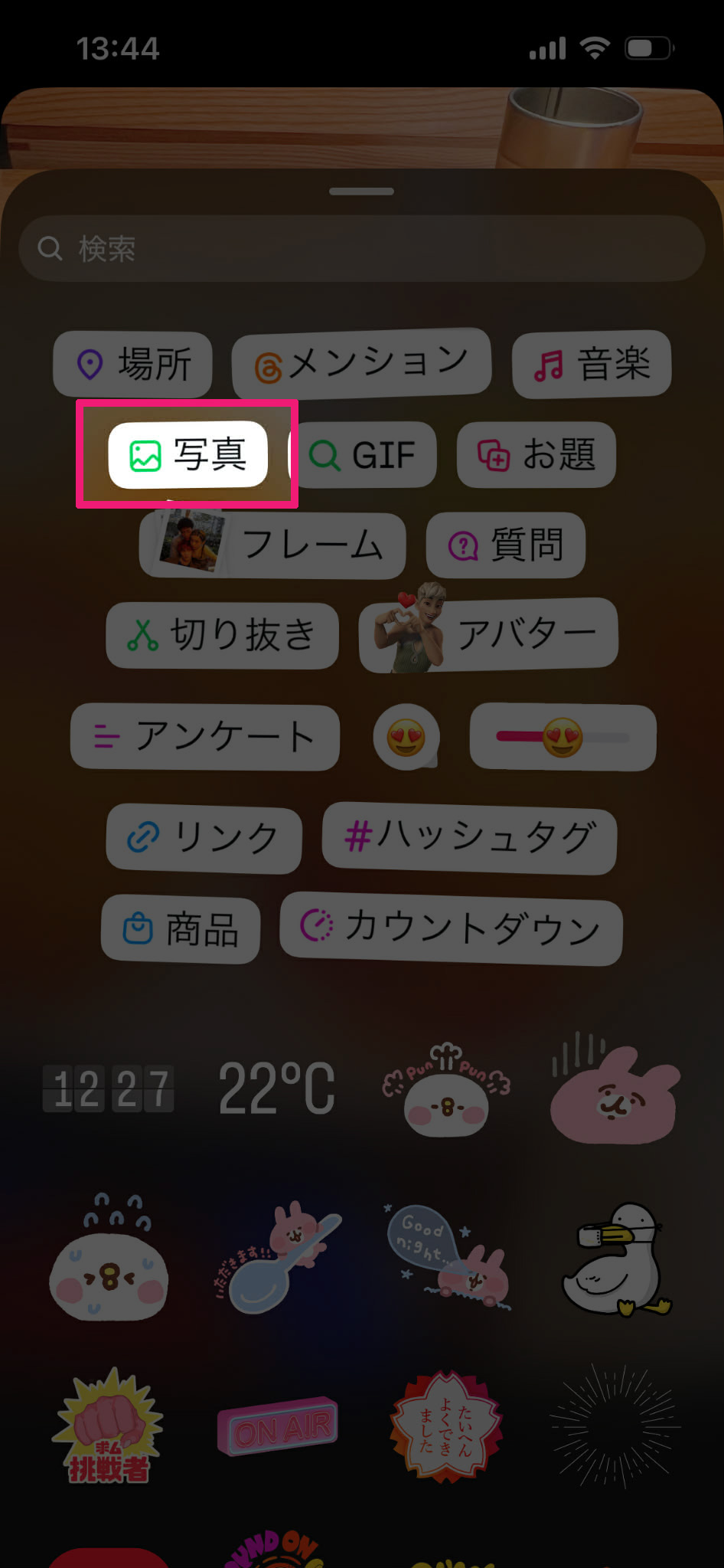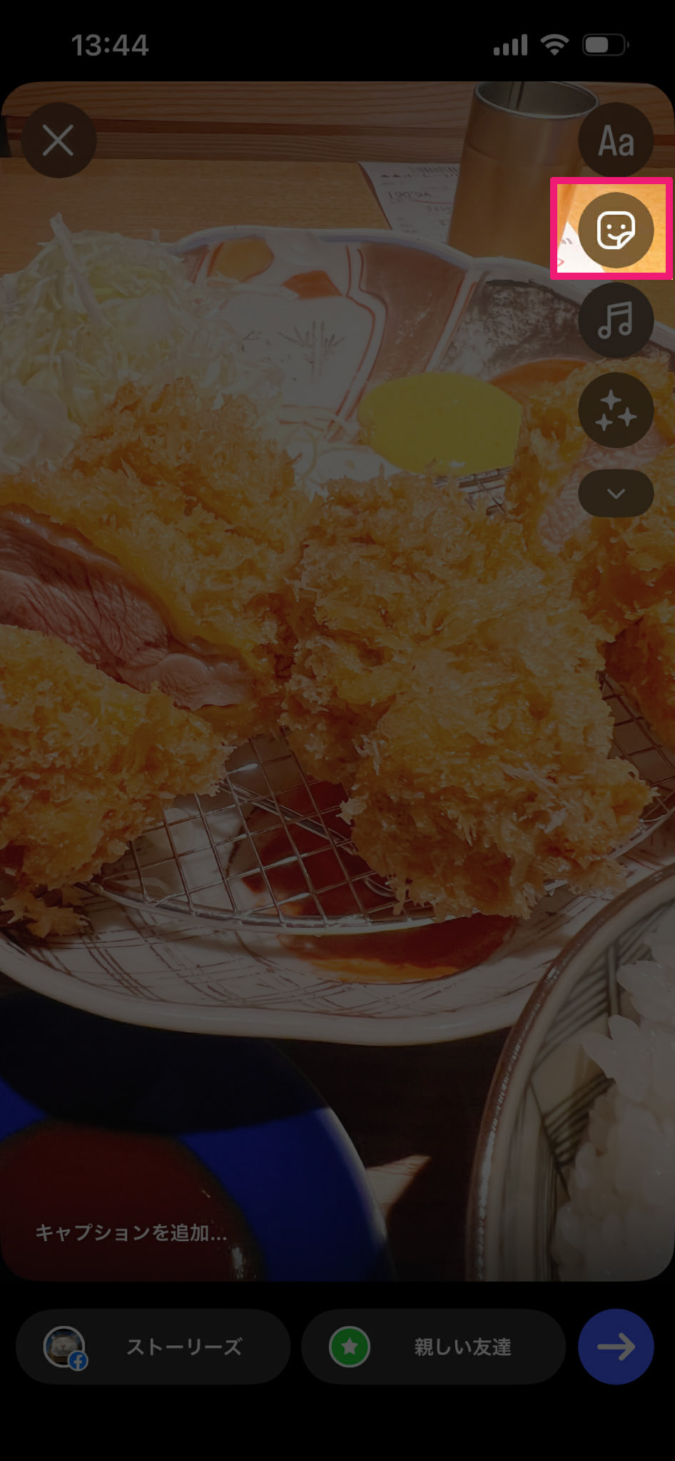 ストーリーズを開いてスタンプアイコンをタップ