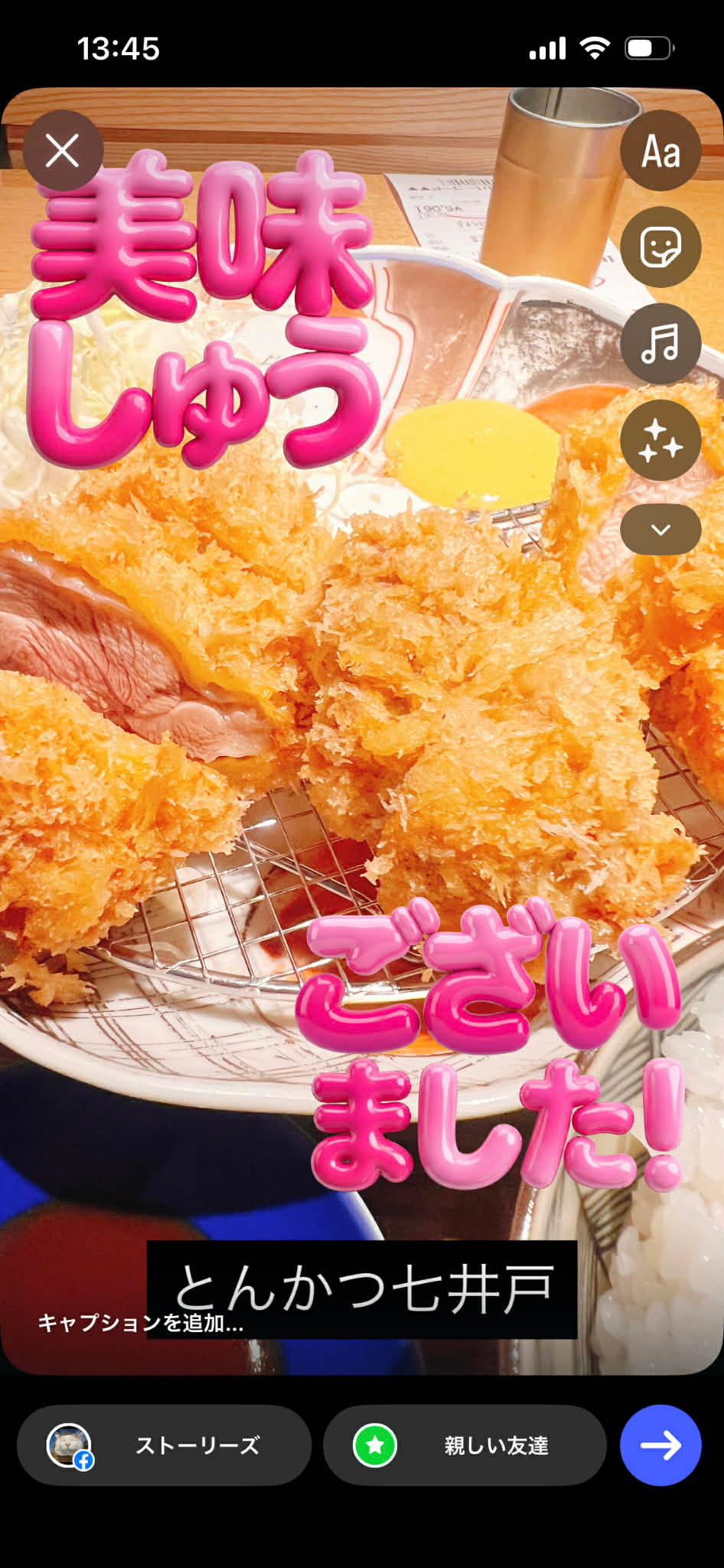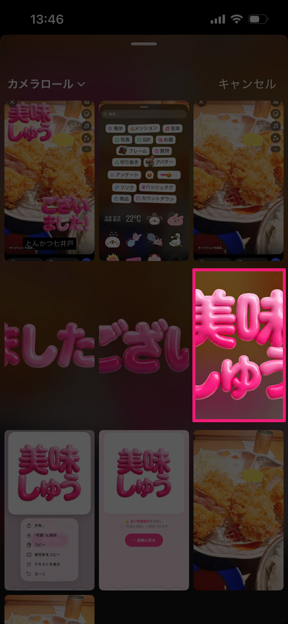 サイズ・位置・角度を調整してストーリーに投稿しよう。ぷに文字ステッカーの完成!